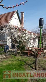 ELADÓ Békéscsabán, az Almáskertekben egy zártkerti besorolású cca. 70 m2-es 2 szobás központi fűtésű, átlagos állapotú, tetőteres vasbeton födémes tégla szerkezetű épület pincével, garázzsal és művehető kerttel